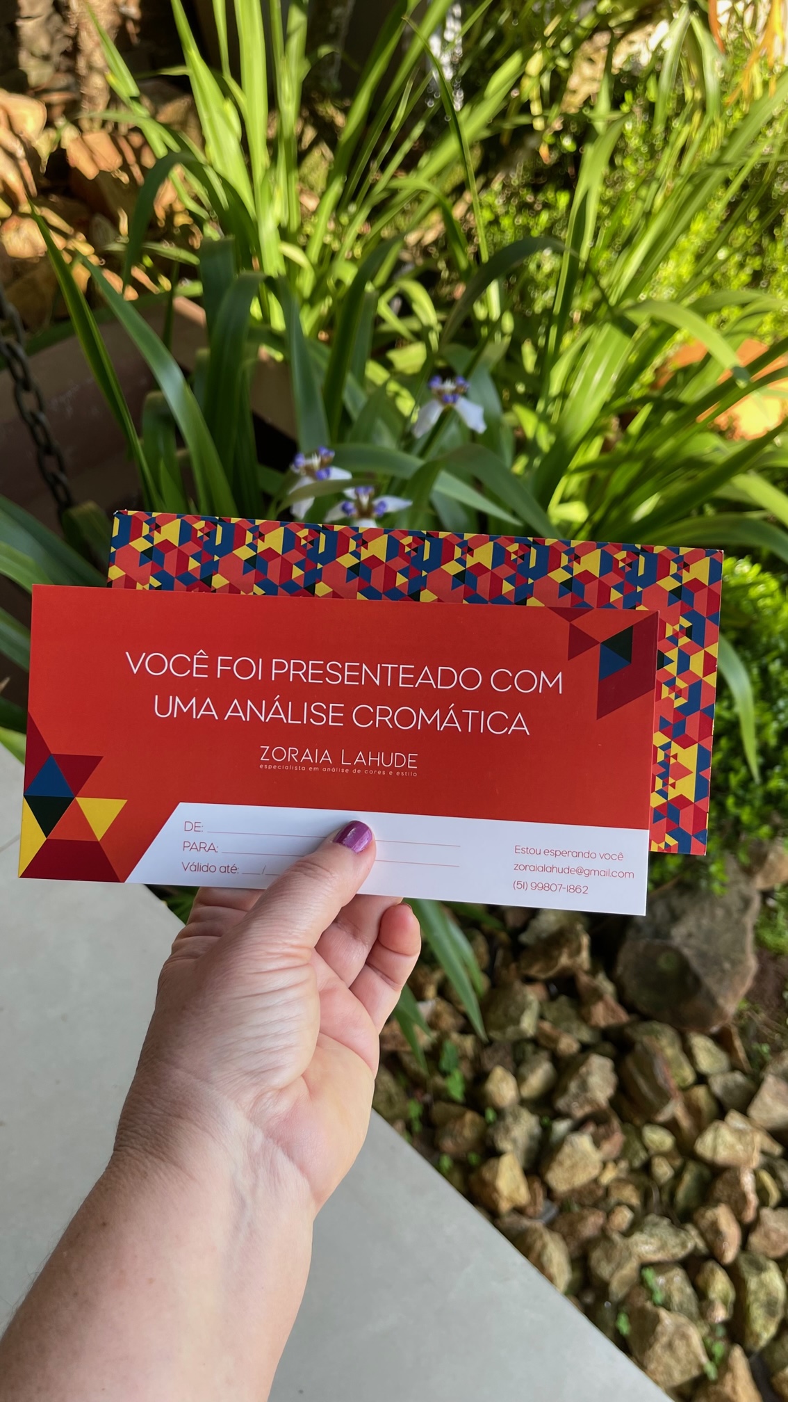Esta opção é perfeita para quem deseja presentear uma pessoa querida com qualquer um dos meus serviços oferecidos: Consultoria de Imagem, Consultoria de Estilo, Coloração Pessoal, Consultoria Pocket ou ainda Personal Shopper. Às pessoas que já fizeram alguma consultoria comigo, separei um desconto especial na compra dos vouchers para indicação a parentes e amigos. É a minha forma de agradecer pela indicação!